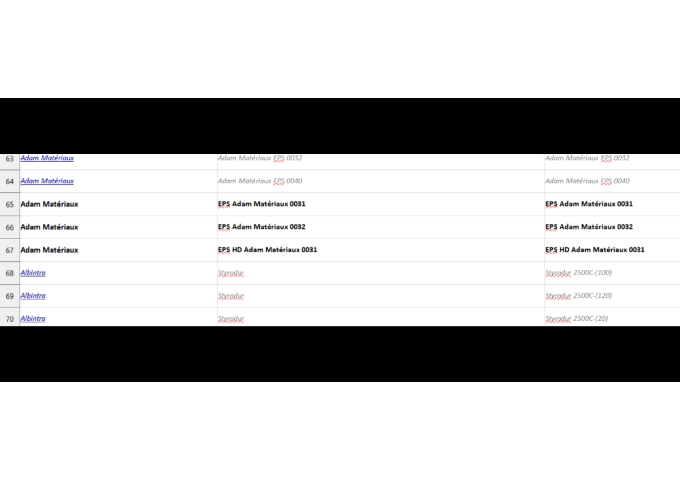 Description : PEB ET PRIMES OK - 6m²/ ballot - 12panneaux/ ballot - Epaisseur panneau= 50mm - Volume= 0,30m³/ ballot - Lambda= 0.031 - R= 1.61 - Dimension panneau= 100*50cm - Poids= 8kg - EPS à Bords droit - Isolant en polystyrène expansé EPS graphite systeme Adam Materiaux pour façade isolante avec pose de crépis, isolation murs et greniers - Pour pose de plaquettes/briquettes= voir fiche technique en annexe - Le système d’isolation de façade Adam Materiaux posé par un professionnel spécialisé bénéficie d’une garantie de 10 ans sur les produits moyennant le respect strict de la note technique Adam Materiaux ainsi que de la NIT 257 - Fabricant= Adam Materiaux - Fait partie du système Adam Materiaux avec la certification belge= ATG 3119 - Fait partie du système Adam Matériaux avec la certification française= ACERMI 22/271/1571