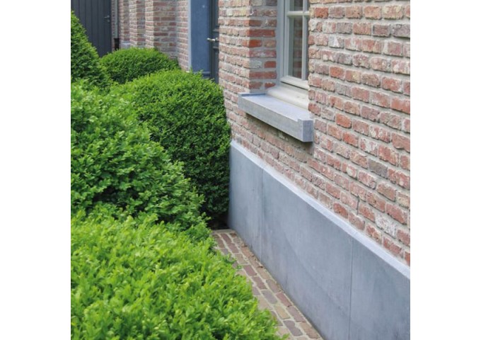 Dimensions:  Longueur= 100cm - Hauteur= 25cm - Epaisseur= 2cm - Nombre par palette= 30pièces - Poids= 13.5kg/ pièce - Poids/ palette= 540KG/ palette - Pierre bleue belge de sous-bassement- Plinthe en pierre bleue belge poncé avec une finition légèrement adoucie et pourvu d'un chanfrein sur le haut de la pierre de dimensions 10x10mm - Les sous-bassements (plinthe) protègent les bas des façades de l'humdité et des salissures -CAUTION PALETTE EURO