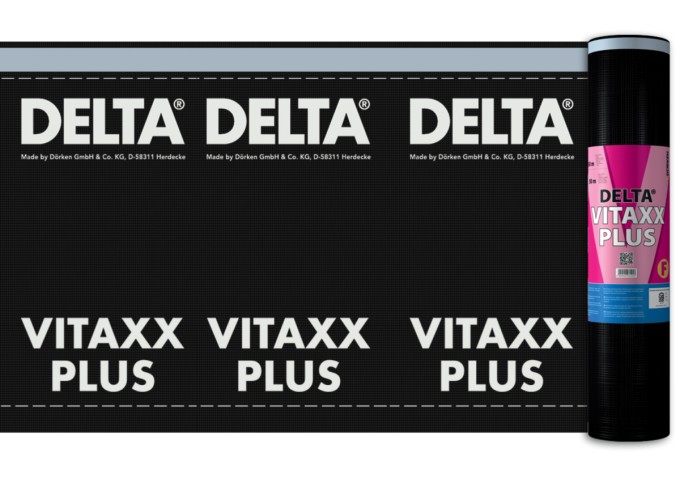1.50x50mètres DELTA®-VITAXX PLUS Écran de sous-toiture haute résistance, HPV R3 armé avec deux bords autocollants intégrés. Extrêmement résistant (R3 armé) Étanche au vent HPV (hautement perméable à la vapeur d'eau). R3 (entraxe entre chevrons jusqu'à 90 cm) Fabricant: Dorken
